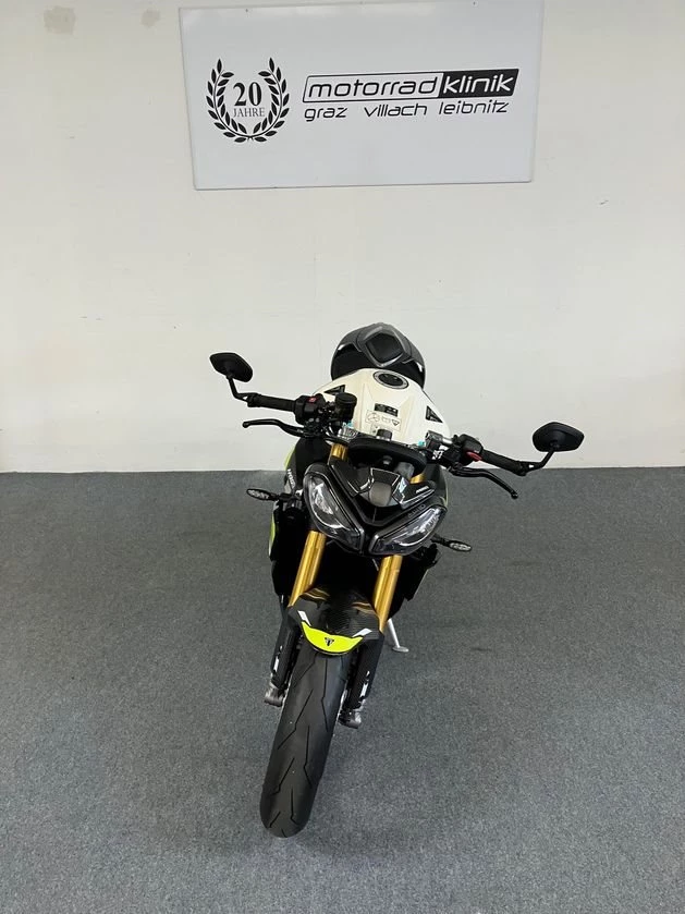Die Triumph verfügt über eineTraktionskontrolle, Kurven-ABS, einen Quickshifter sowie ein TFT-Display mit intuitiver Menüführung.