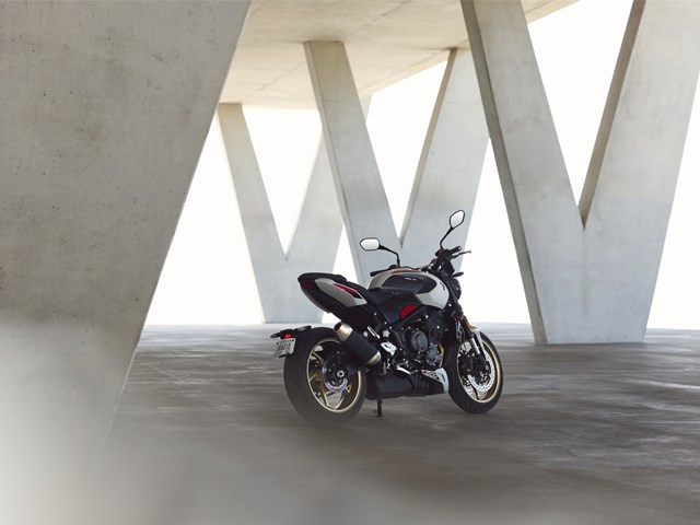 die neue Trident 800 seienmäßig mit 3 Fahrmodi, Kurven ABS, Kurven Traktionskontrolle, Quickshifter, Tempomat, My Triumph Connectivity System